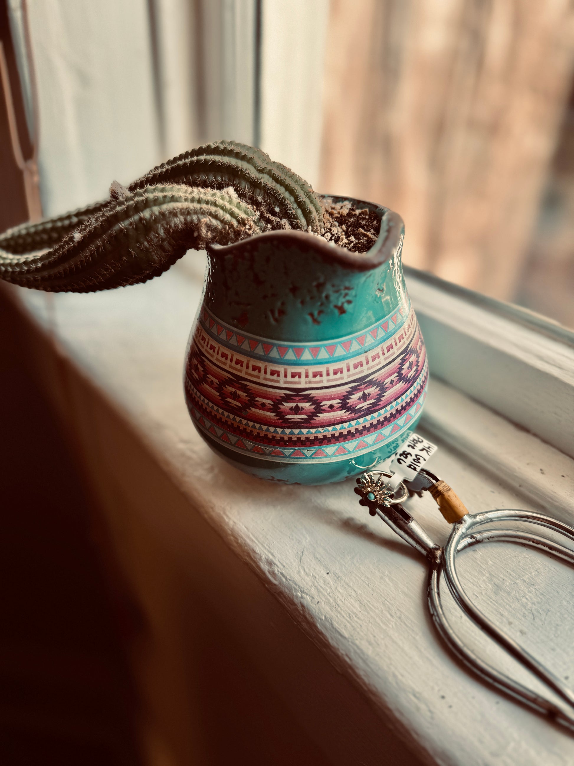 14 karat gold plated sterling silver sunray ring has 3mm and 1-1.2mm turquoise and 1-1.2mm white CZs. Sunray design is 15.7mm x 12.9mm.