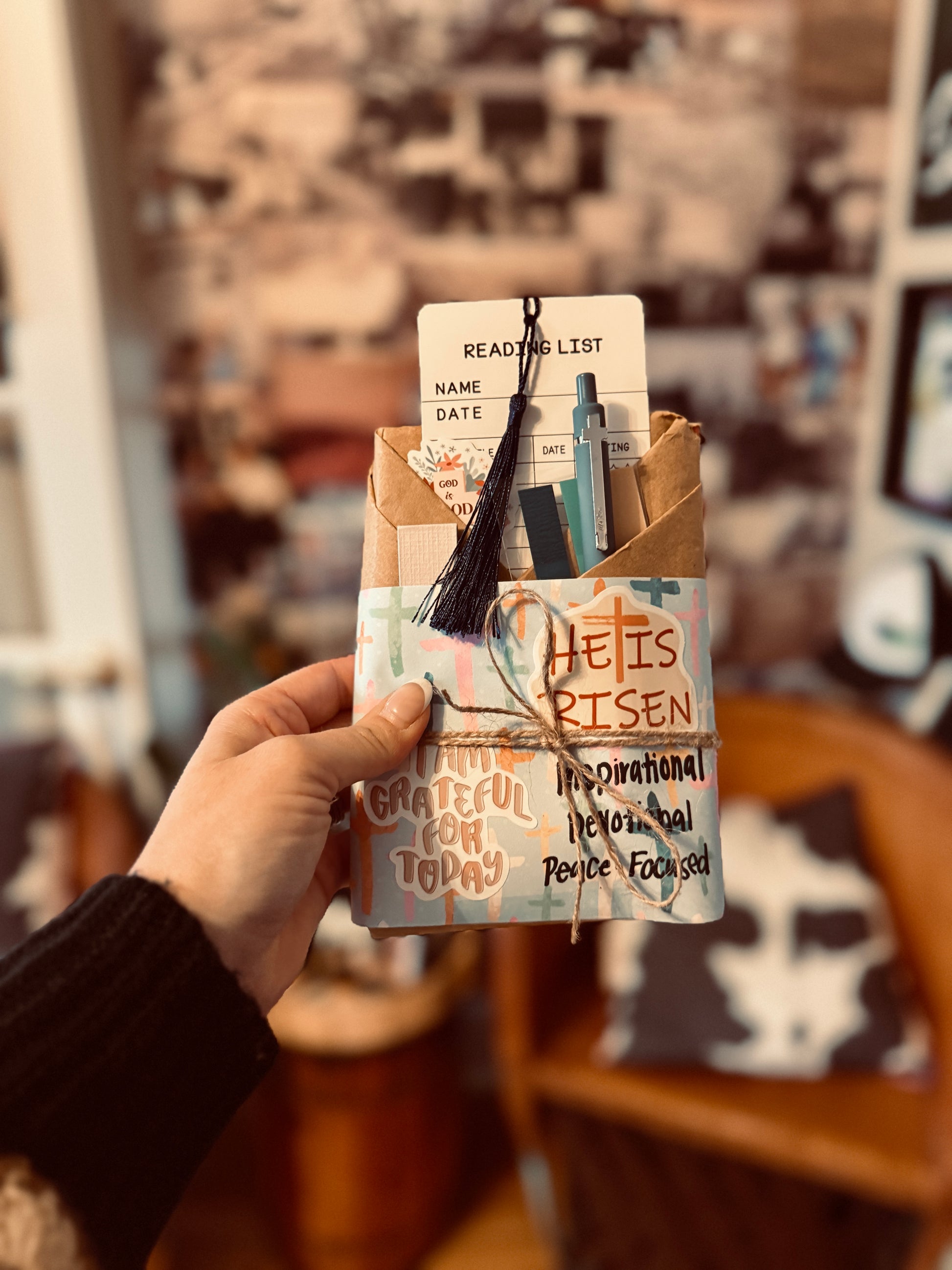 Saddle up, darlin’—it’s time to take a chance on a story you didn’t even know you needed. Our Christian Western Boho Blind Date With a Book is the perfect mix of mystery, charm, and cozy adventure. We have books from christian devotionals to, non fictions to western romance. Each book is hand-wrapped in rustic paper, tied up with twine, and dressed in a touch of boho flair—think warm tones, wild west vibes, and a sprinkle of wanderlust.